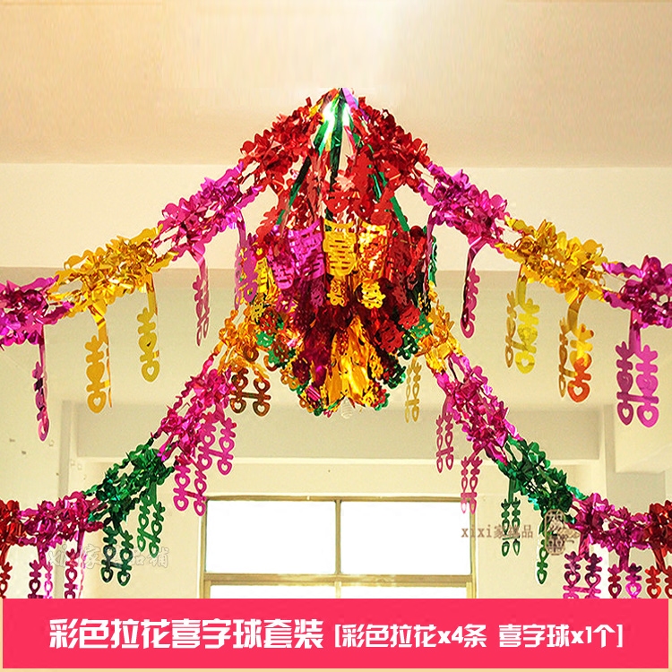 Hi word pull flower color belt suit Wedding wedding room decoration decoration Wedding wedding supplies Festive hanging decoration