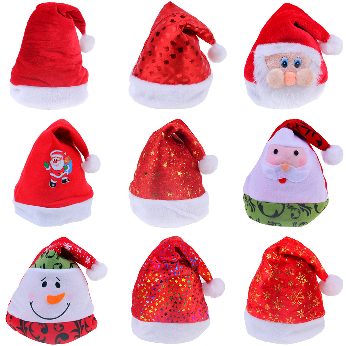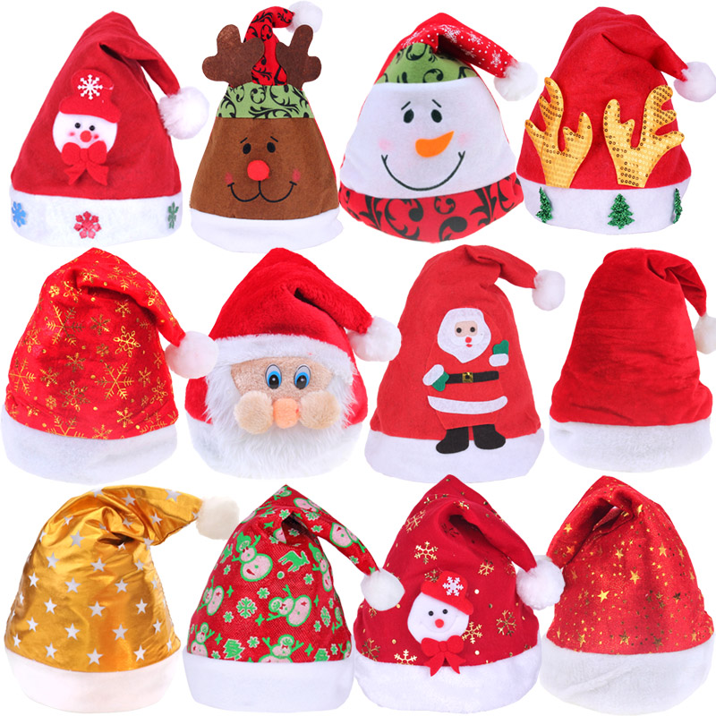 Gold Velvet Christmas hat Adult Non-woven Christmas Hat Snowman Non-woven Christmas Hat Children's pattern Non-woven Random hair 1 Gold Velvet Old Man Head Christmas Hat Non-woven Old Man Head Christmas Hat