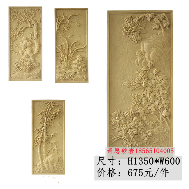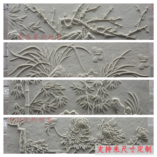 Sandstone Reliefs Melan Bamboo Chrysanthemum TV Background Wall Solid Mural Glass Fiber Xuan Guan Sculpture Hotel Villa Renovation