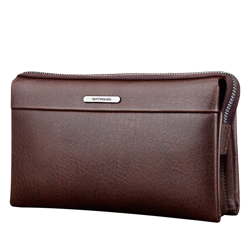 Septwolves men's handbag pure first layer cowhide clutch brand full leather clutch bag large capacity soft leather