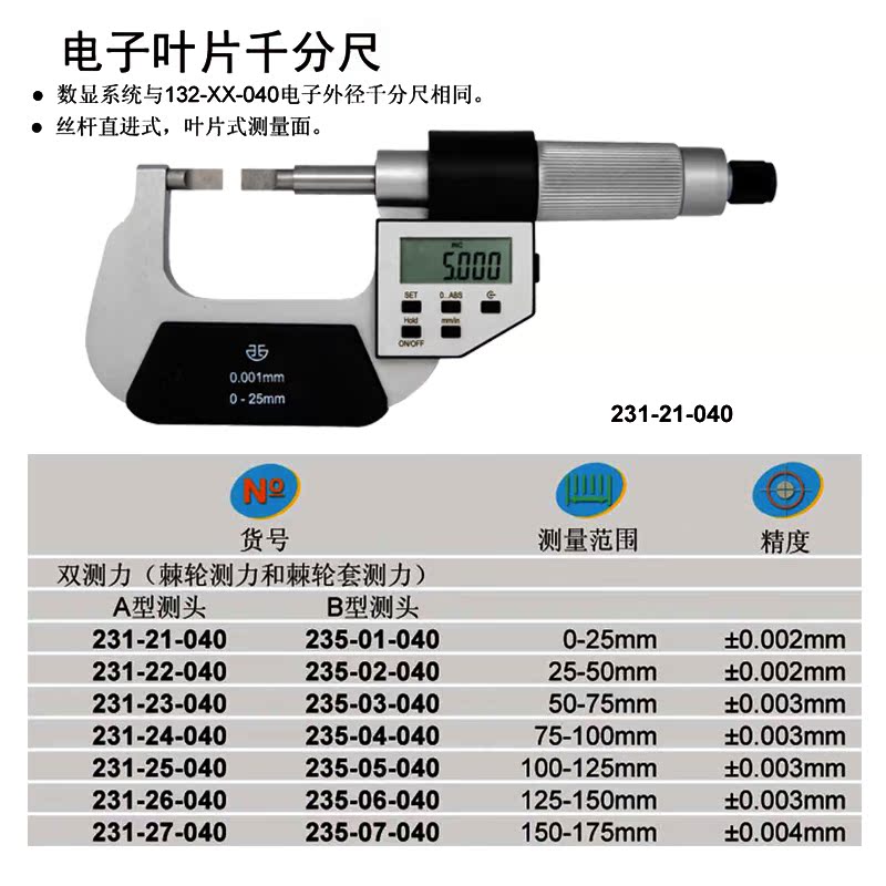 Special price green number of display blades micrometer electronic vane micrometer 0-25 25-50 50-75