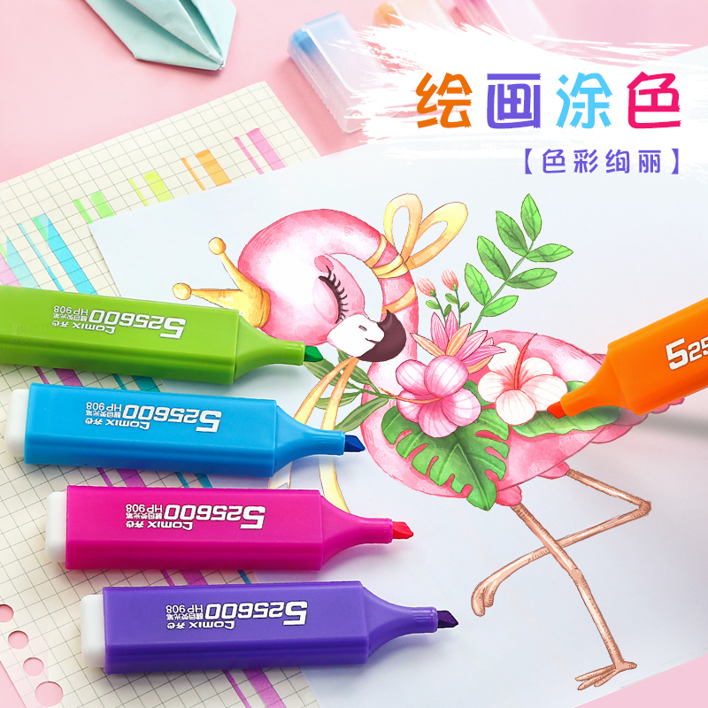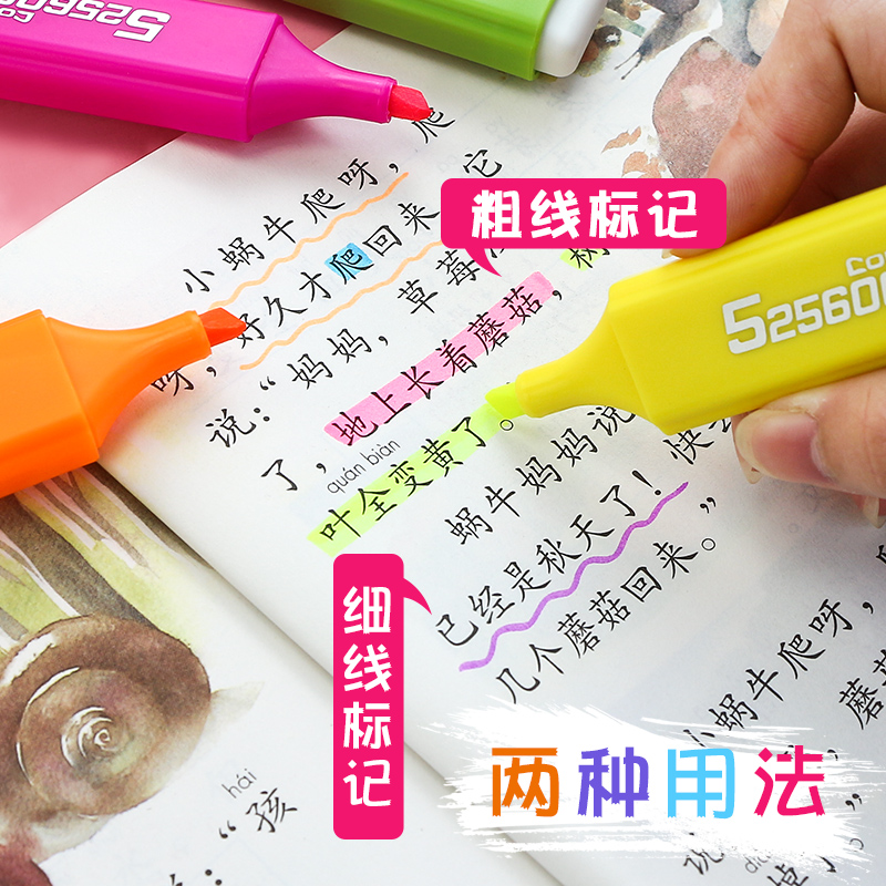 Qi Heart Fluorescent Marker Pen Coarse head wide Ying light to make notes used silver Light color orange students with colorful tick green yellow purple fluorescent pen Large capacity monochromatic red painting focus inclined head