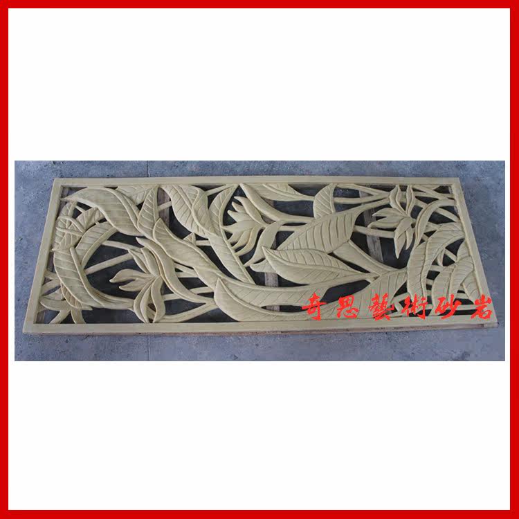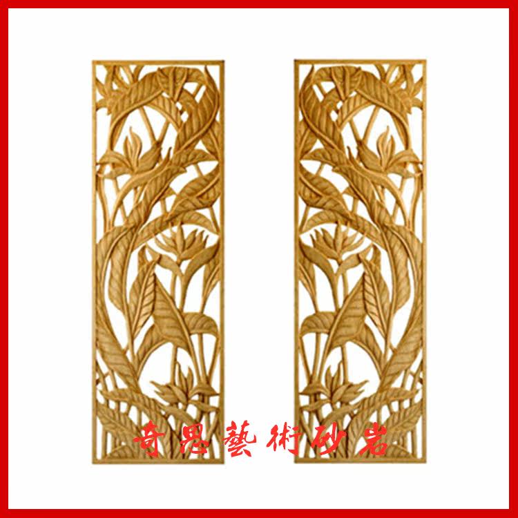 Sandstone relief light-transmitting background wall sculpture three-dimensional mural hollow flower plate glass steel imitation copper European mountain flower sculpture