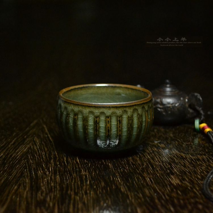Zeng Qinji Single bucket cup Tea set Gongfu Tea Antique glaze Ge Kiln Celadon Longquan Ancient Kiln cup Master cup Special mouth cup