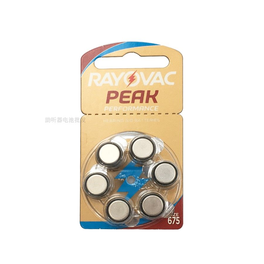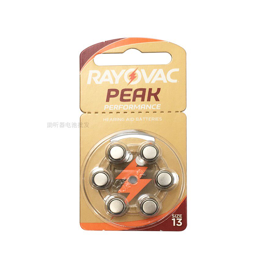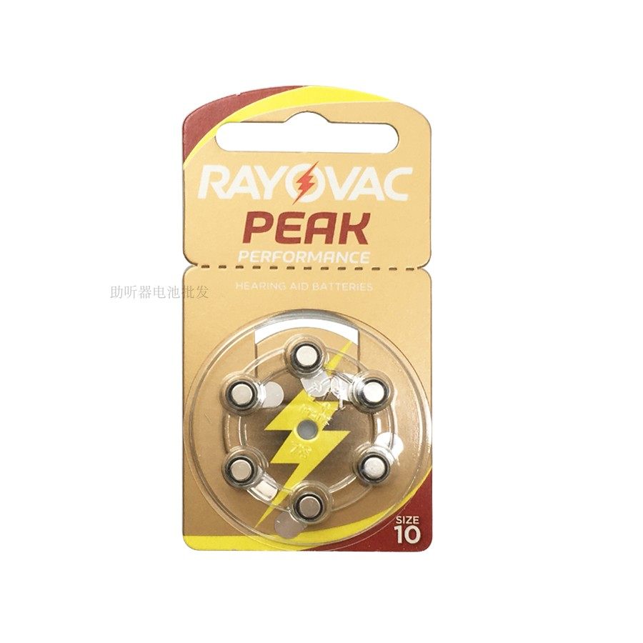 A box of RAYOVAC PEAK hearing aid batteries 10 1 45V (ten years old shop)