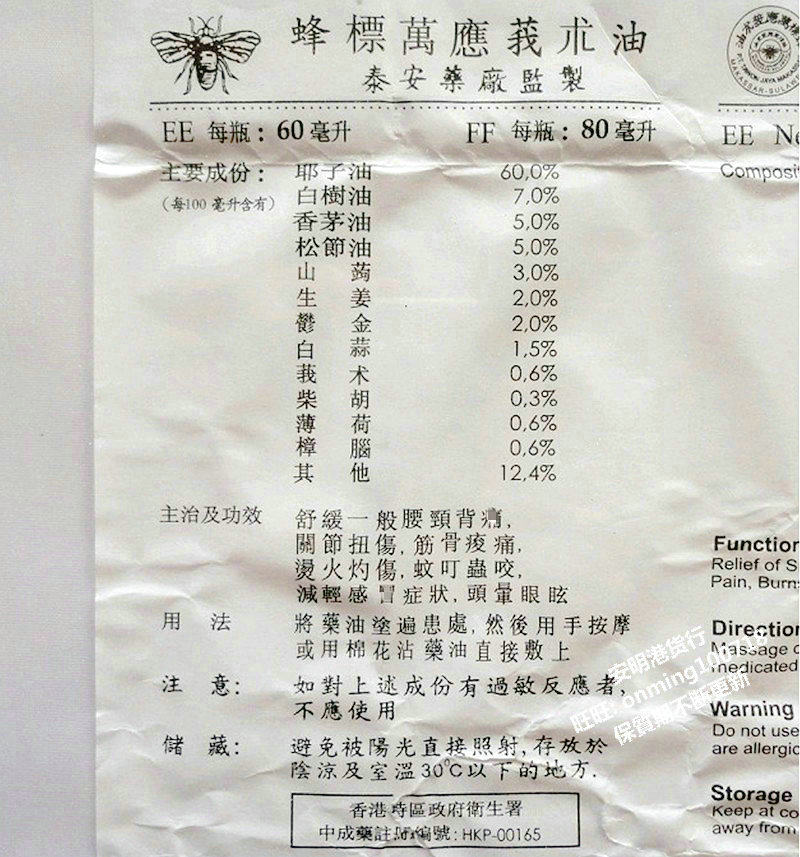 Indonesia Bee's Brand Wanying Zedoary Oil Magic Oil 60ml