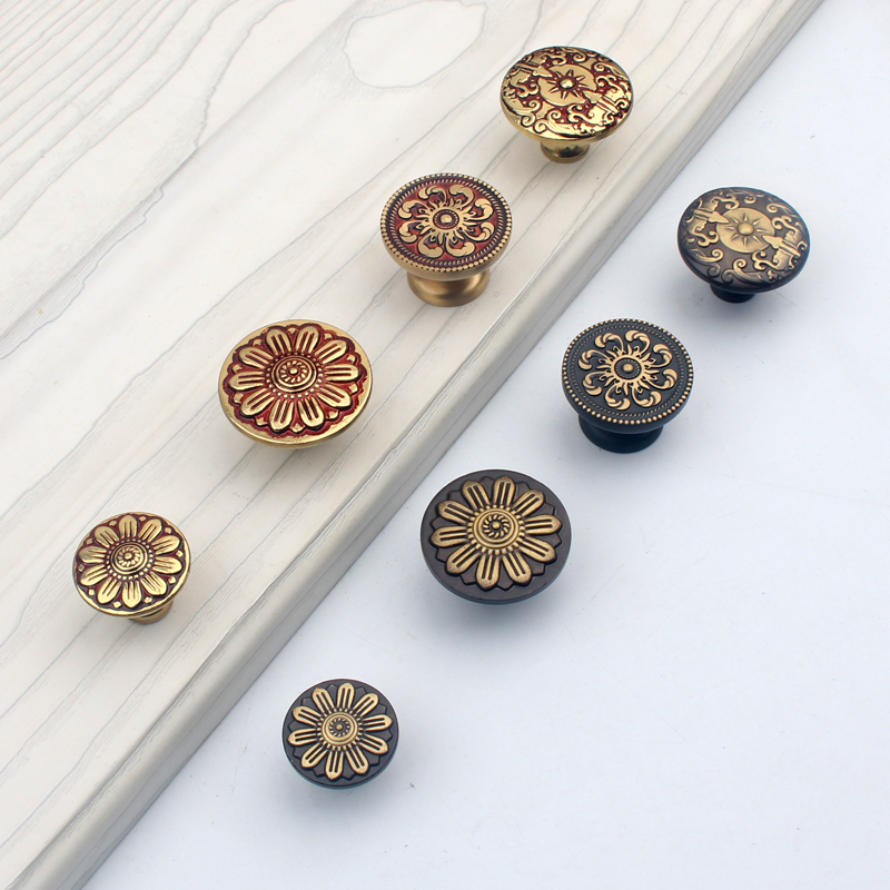 Magdeburg drawer Chinese-style copper handle antique pure copper American-style cabinet door furniture overall cabinet European-style cabinet single-hole handle