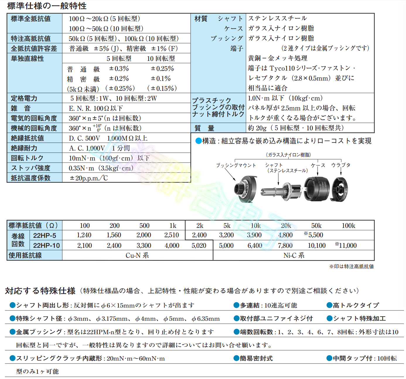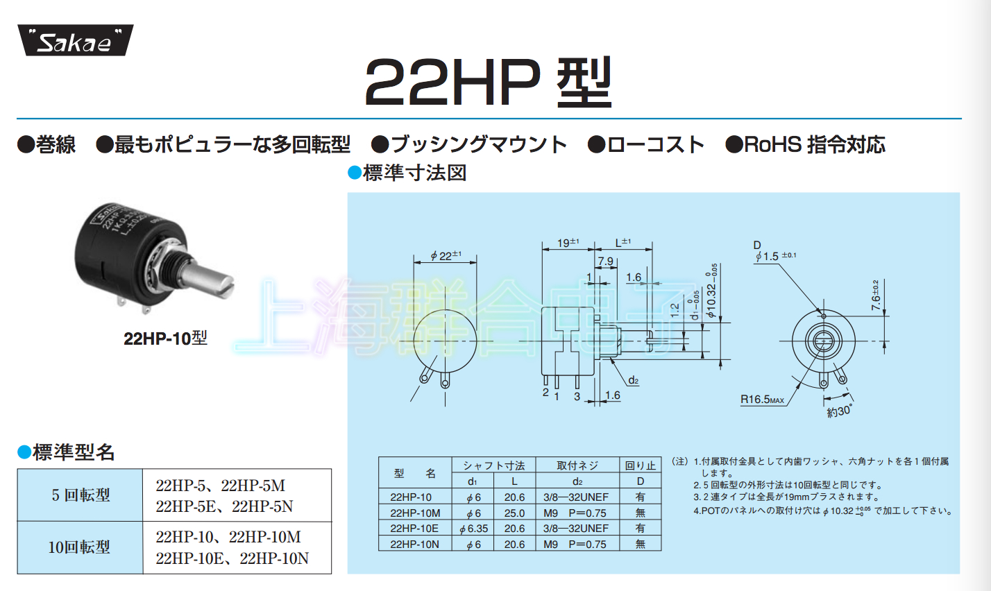 Japanese original Sakae potentiometer 22HP-10 1K 2K 5K 10K with complete resistance values