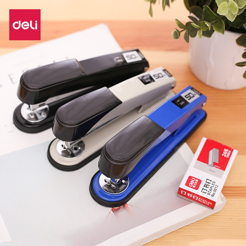 Deli 0314 stapler office thickened 12 large metal body thick layer stapler can be ordered to 50 pages