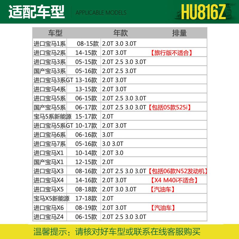 Manchester brand HU816zKIT fits BMW 320 328 520 525 528 X3 X1 X5 X6 oil filter