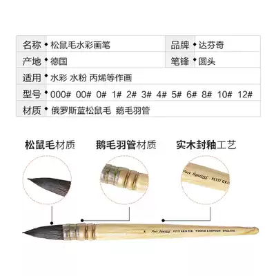 Germany Da vinci Da vinci master pure squirrel hair soft watercolor painting pen mop brush 418