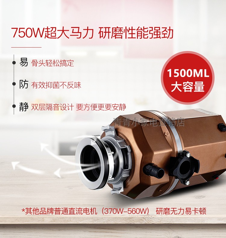 Jingbang 750W household kitchen food waste processor sink washing basin Kitchen waste water grinder automatic