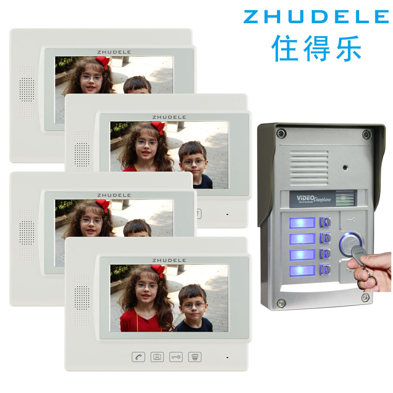 Live Le 4 color visual building intercom 7 inch visual intercom doorbell 4 family type card lock 37T4