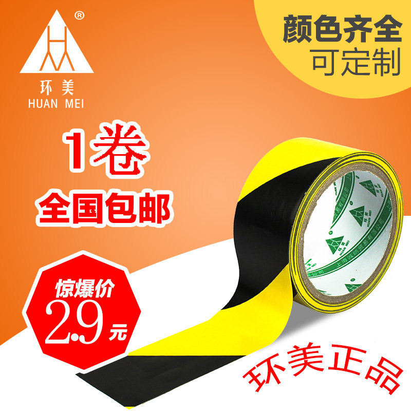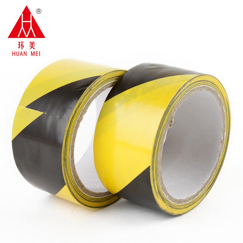 Huanmei black and yellow warning tape with a bandwidth of 4 8cm and a length of 20Y yellow and black pvc crossed tape color ground tape