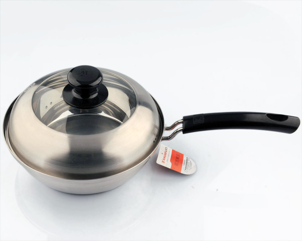 Homeoped New pie frying pan 24cm Rebase 304 stainless steel flat frying pan environmentally friendly without coating with lid oven