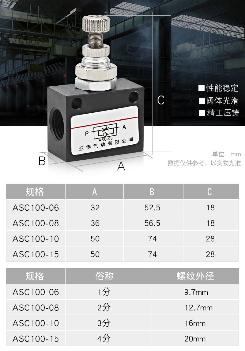 Pneumatic one-way throttle valve ASC200-08 06 10 15 flow control valve 2 with 4-minute adjustment valve throttle valve