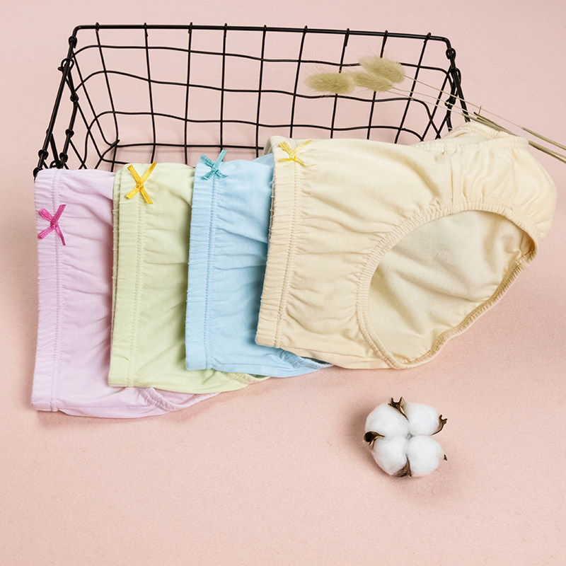 Yizhishe underwear ladies 100% cotton briefs pure cotton cotton breathable mid-waist cotton solid color bow