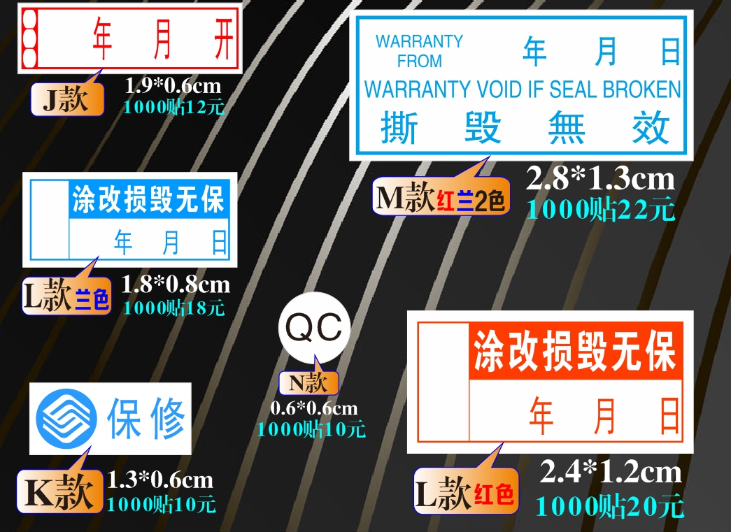 Large, medium and small fragile label repair stickers in Chinese and English general warranty warranty stickers 1000 stickers from 10 yuan