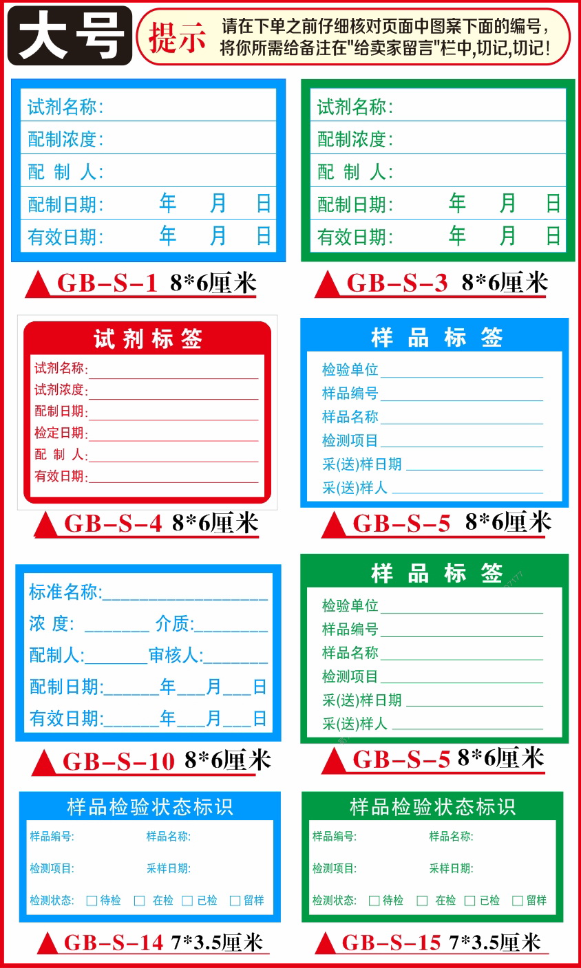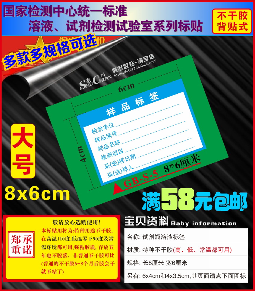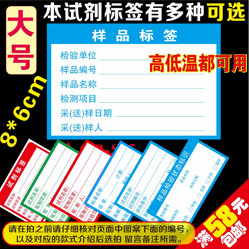 Large size 8*6cm80x60mm Laboratory solution test reagent bottle inspection sample sample sample sample waterproof label