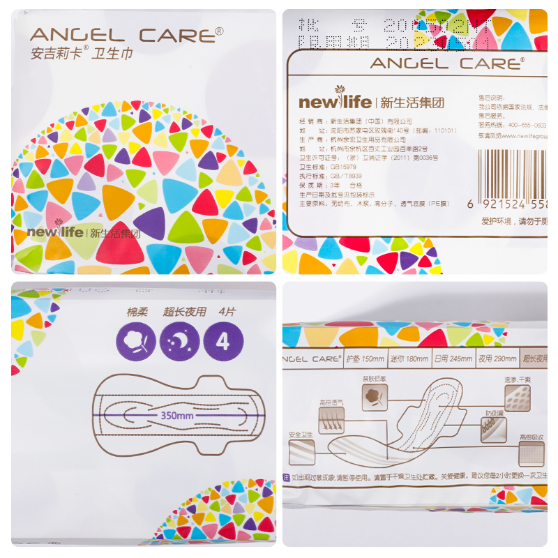 Counter Korea New Life Angelika Pure Cotton Soft Lengthening Ultra-Long Night Sanitary Cotton 4 Pieces Pack 350mm