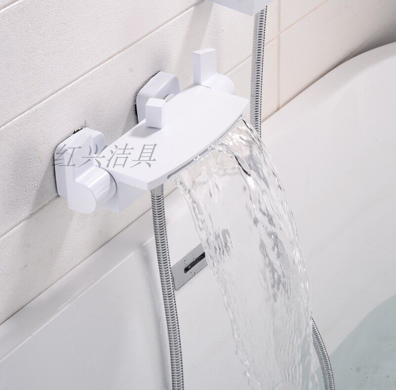 Copper white black chrome plated gold-plated square waterfall outlet bathtub faucet shower bathtub set
