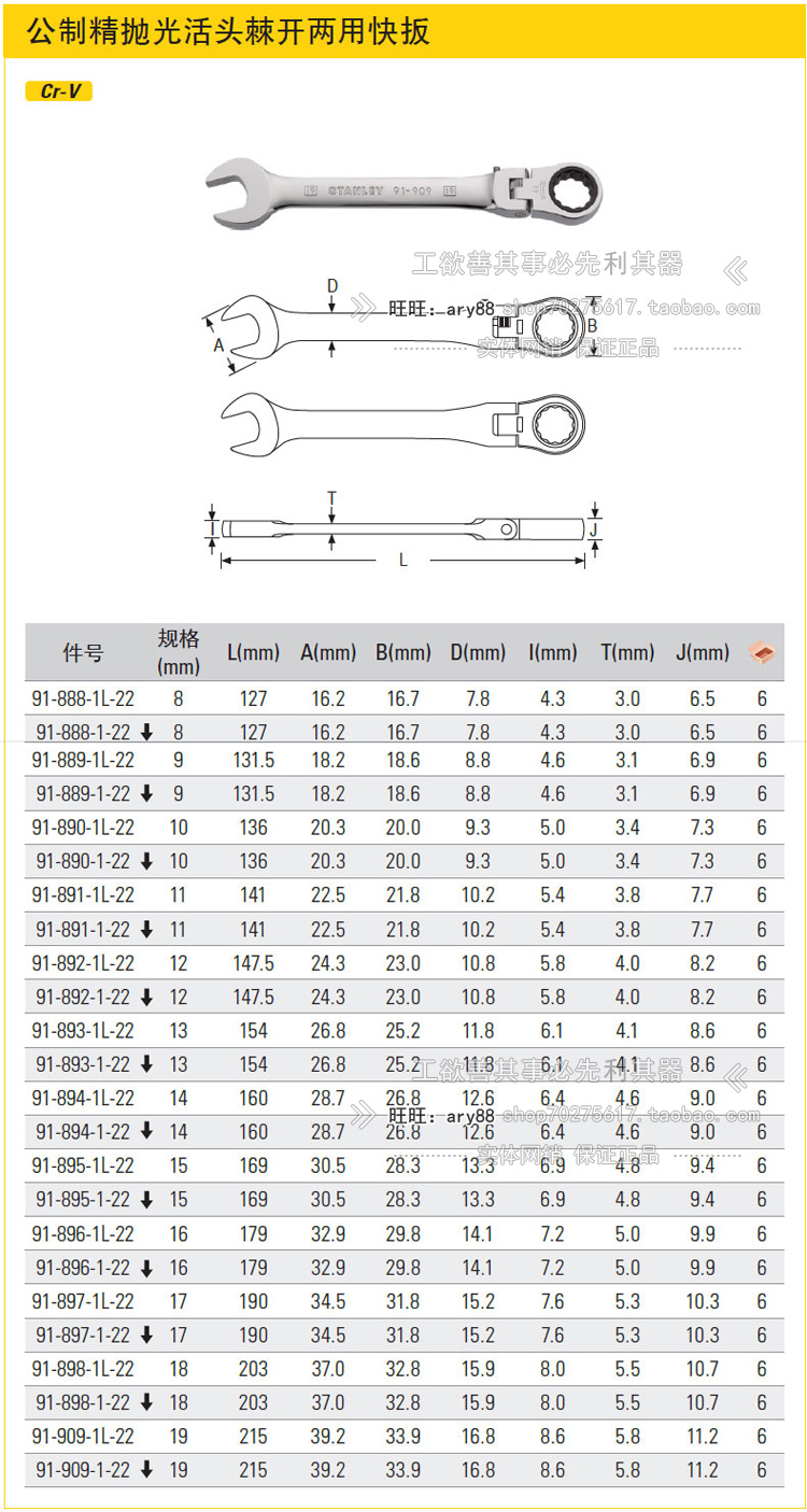 8mm Live Head Dual-use Quick 91-8889mm Living head Dual-purpose quick wrench 91-88910mm 91-89011mm Living head Dual-use quick-pull 91-89011mm