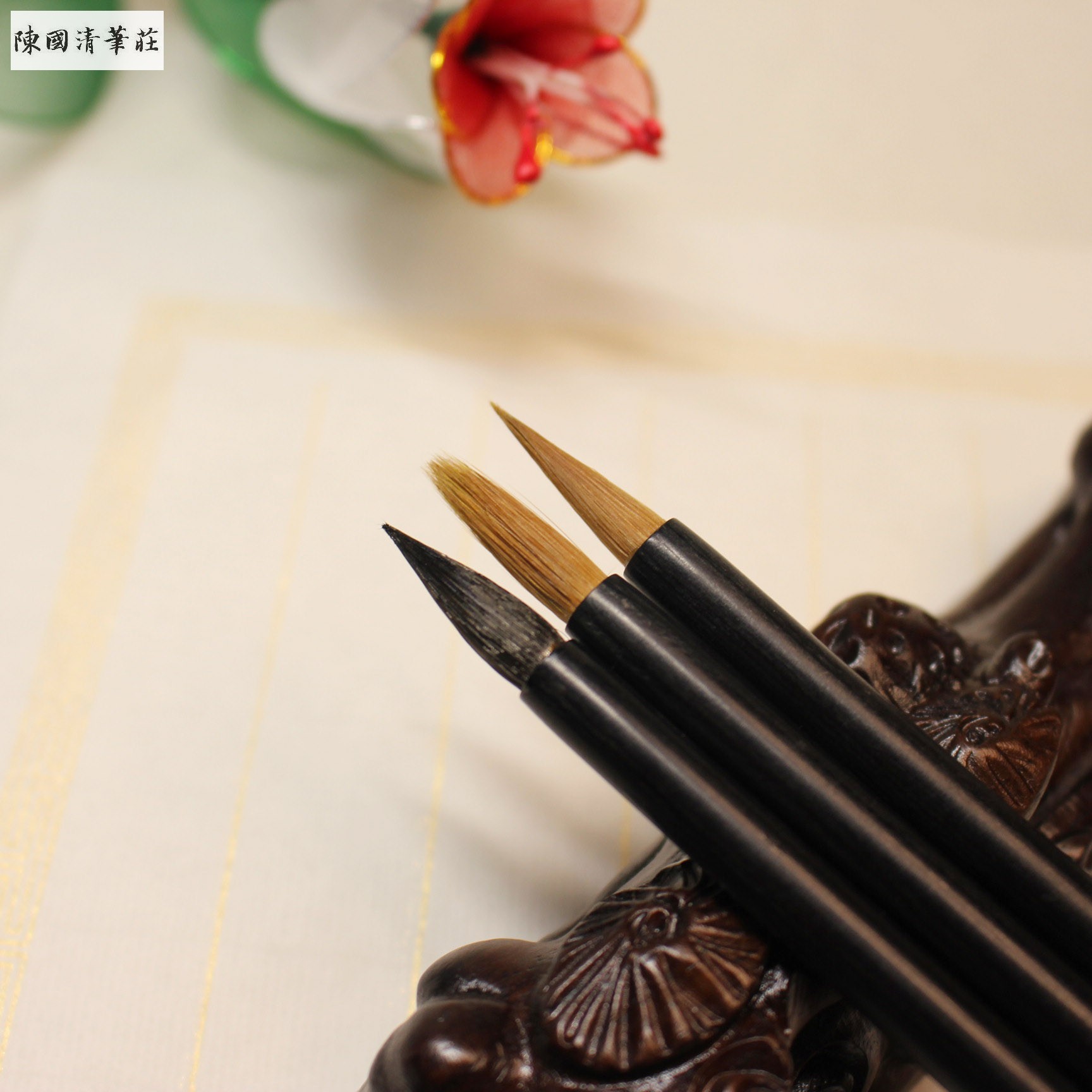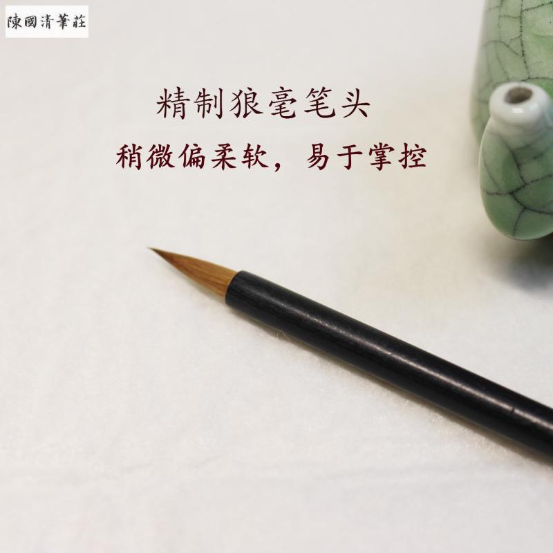 Boutique wolf tail small script copy freehand meditation solid wood wolf hair Chen Guoqing pen village training high-end calligraphy and painting brush