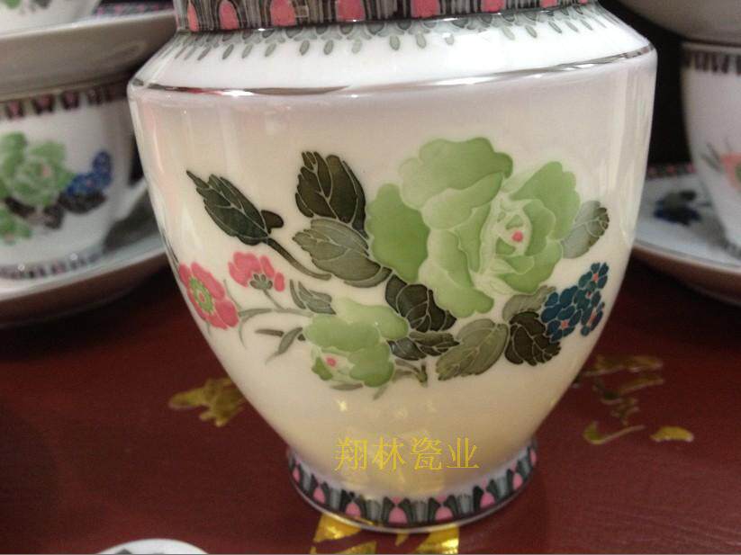 Liling Old Porcelain-Collection of 15 Green Peony Tea sets produced by Xinghuo Porcelain Factory in the 70s