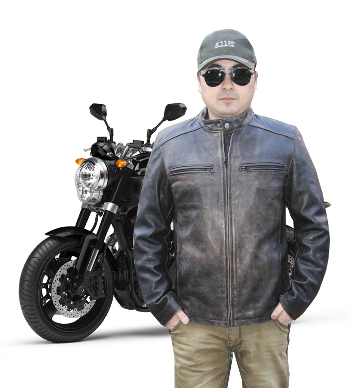 Imitation old cowhide jacket Black RireT men's casual collar imported cowhide motorcycle leather jacket