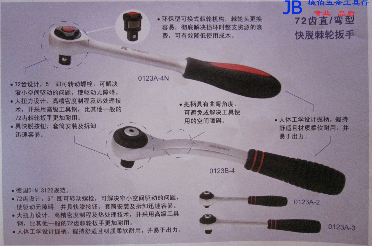 German K-card tool 0123B-4 72 Tooth Bend Type Quick Off Ratchet Wrench 1 2 Drive Interface-Taobao