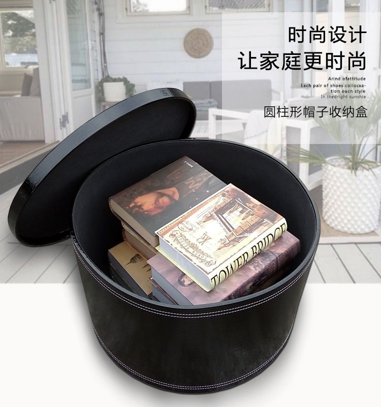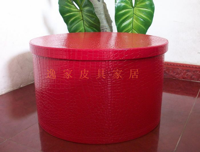 New high-grade leather round extra-large storage box with lid sun hat hat hat storage box wedding red box