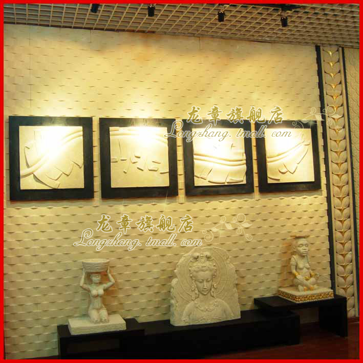 Upper Sea Dragon Chapter Art Sandstone Relief Pendant Sofa Background Wall Hotel Decoration Painting-Plantain Leaf Wall Decoration B