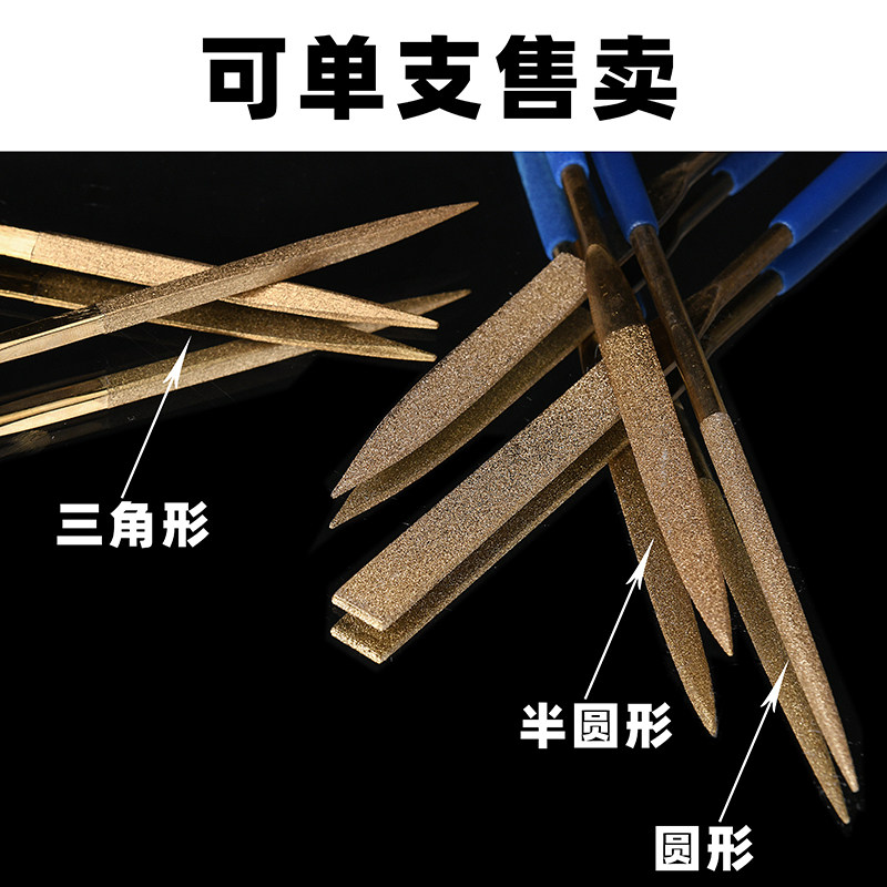 Plated titanium alloy filing knife 3 * 140 5 * 180mm diamond filing knife suit parallel triangular semicircle Shgin file