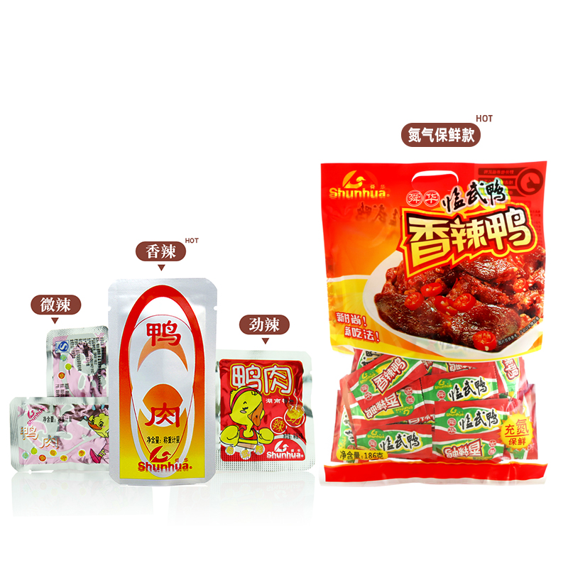 (Nitrogen-filled lock fresh)Spicy taste 186g about 55 bags Three-flavor mixed duck (about 62 bags) Spicy taste(about 42 bags) Slightly spicy taste(about 4