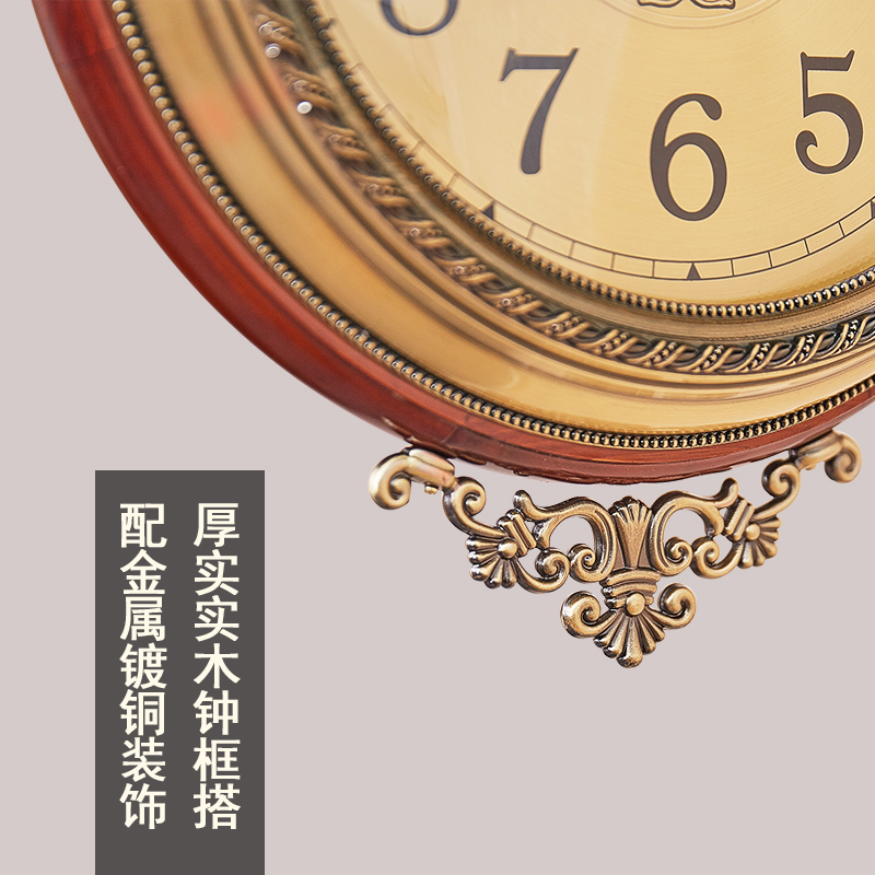 Eurostyle solid wood double-sided hanging clock living room mute two-faced clock Chinese style hanging table creative American art decoration clock