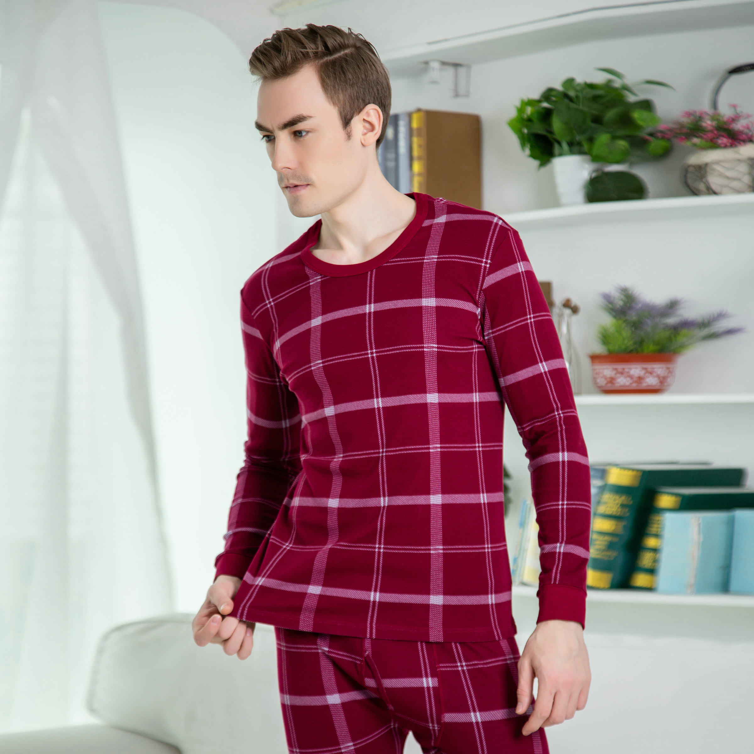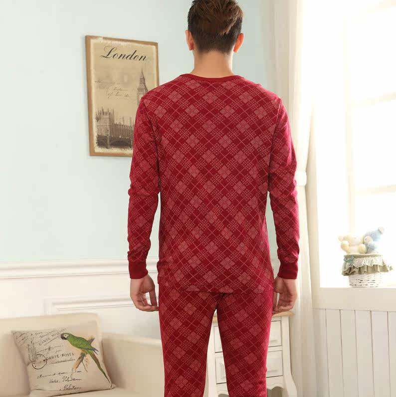 Ultra-low price Italian new counter synchronous men's pure cotton autumn clothes long johns underwear suit red bottoming sweater