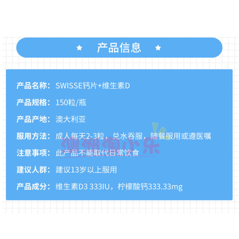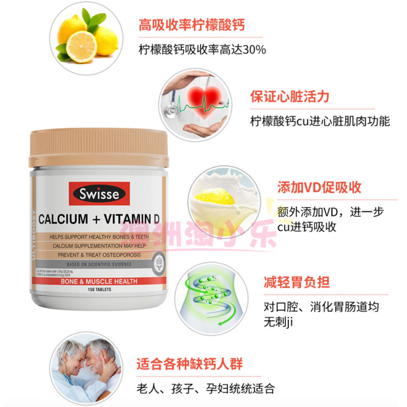 Australian swisse calcium tablets Niang Niang calcium vitamin D lemon calcium carbonate 150 capsules adult pregnant women middle-aged and elderly calcium supplement