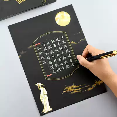 Thickened a4 black hard pen calligraphy work paper black background white calligraphy paper student ancient poetry pen practice paper ancient style square calligraphy competition paper black card Chinese style calligraphy display paper
