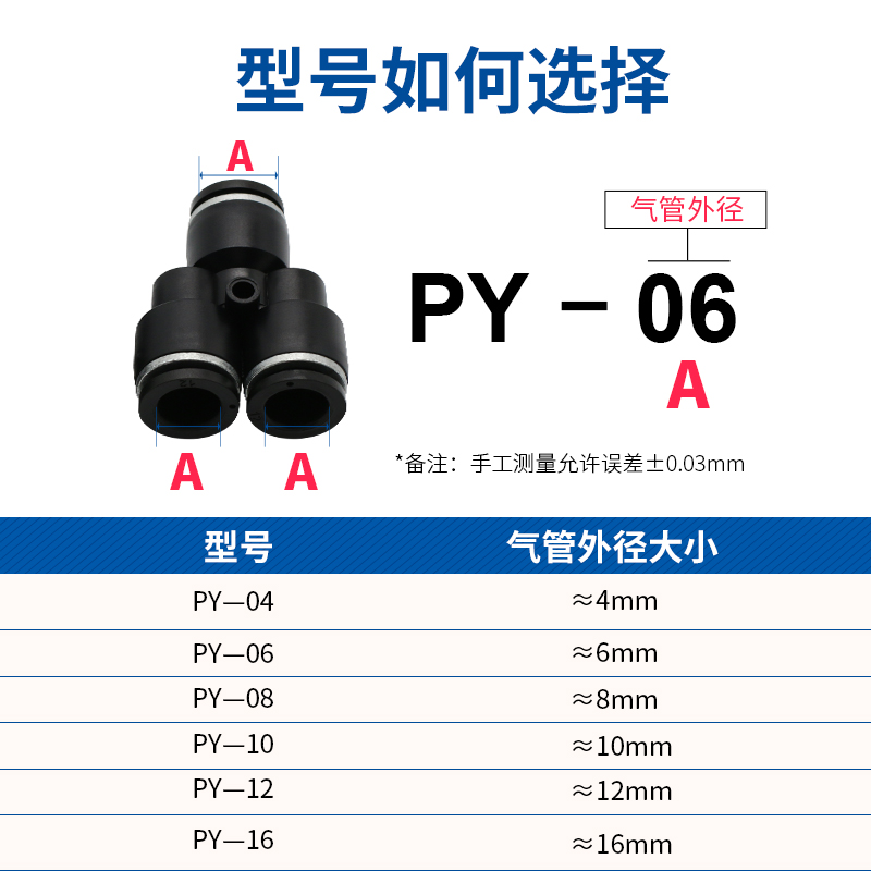 Trachea joint Quick joint Three-way joint Y-type three-way PY4 PY6 PY8 PY10 PY12 PY16