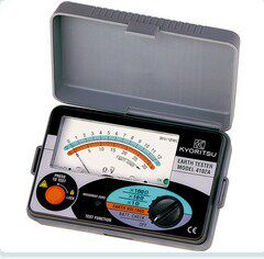 Co-standing KYORITSU KLEETZ GROUNDING RESISTANCE TESTER 4102AH grounding the grounding pile of the grounding line