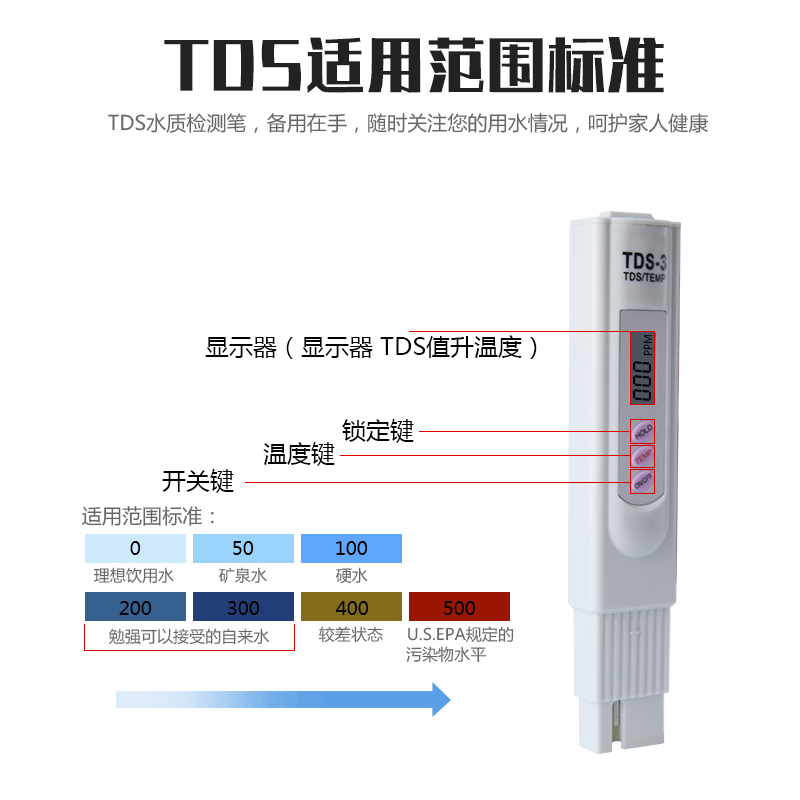 3-key tds pen test pen water quality RO reverse osmosis water purifier detector hardness direct drinking tap water electrolyzer