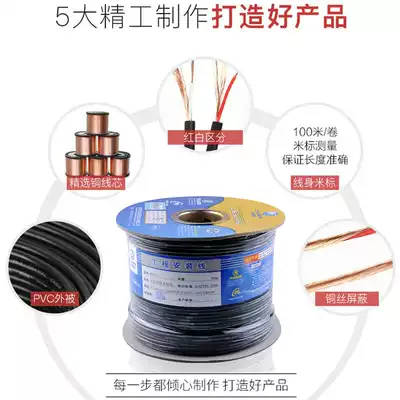 Q155A pure copper double-row audio line stereo with shielded 2RCA red and white four-centile line 2-Share background music dedicated