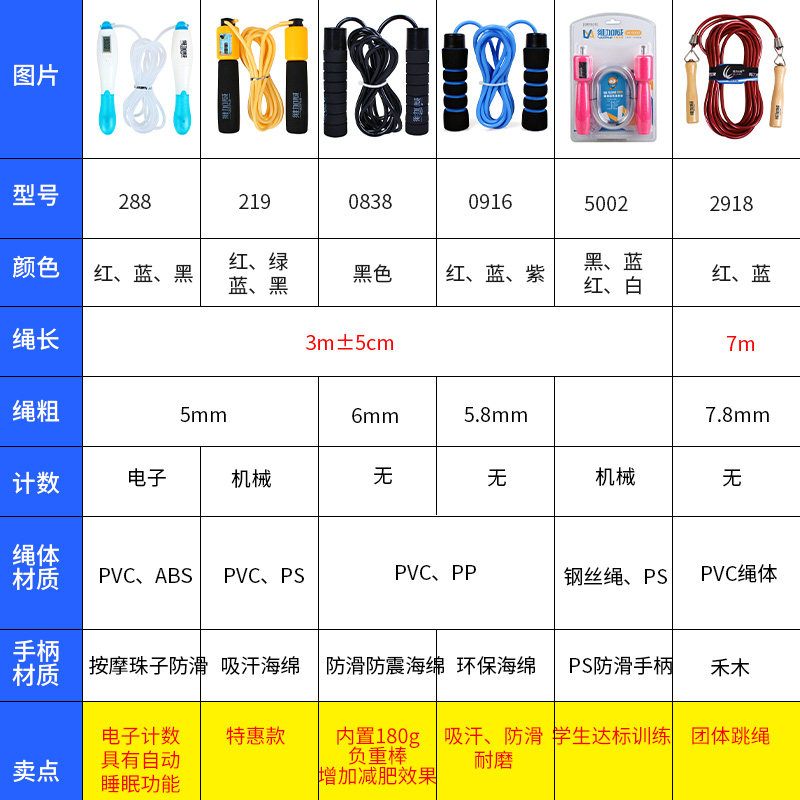 Electronic count 288 (blue) in the exam training electronic count 288 (red) in the exam training electronic count 288 (black) in the test training steel wire jumping rope 5002 (black)