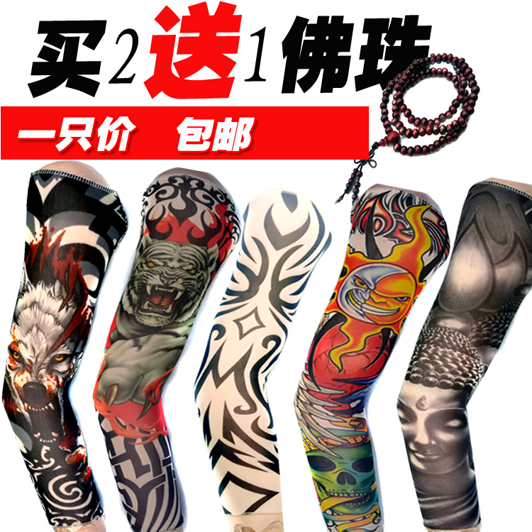 Tattoo sleeve sunscreen sleeve male lady with slit piercings green arm riding bike ice sleeves arm sleeves arm sleeves