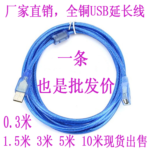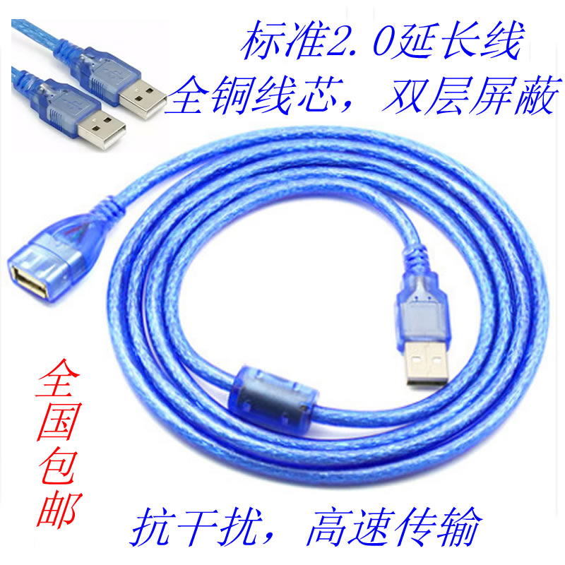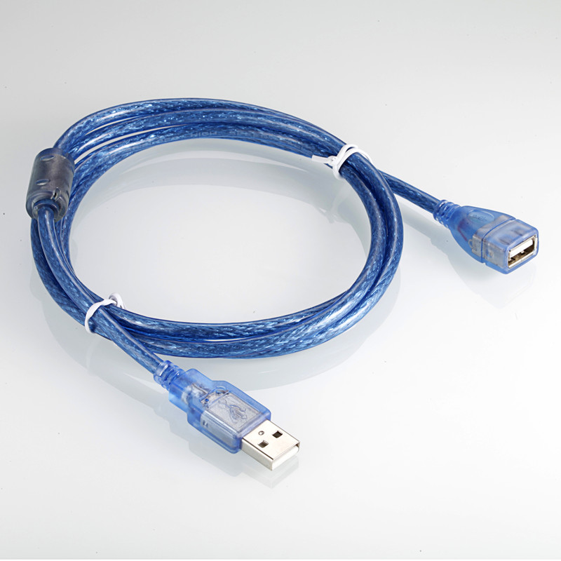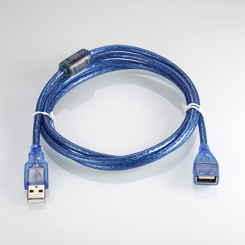 High speed 1 5m USB extension line Full copper double shielding metal to mother A F transparent blue USB2 0 with magnetic ring