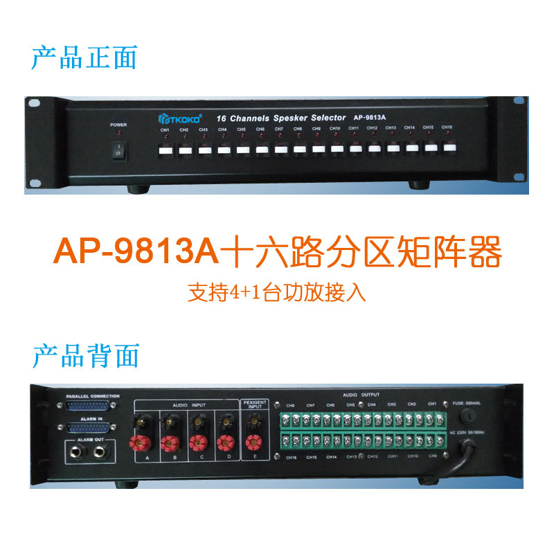Sixteen-way partition AP-9813A matrix switching selector amplifier Public address system