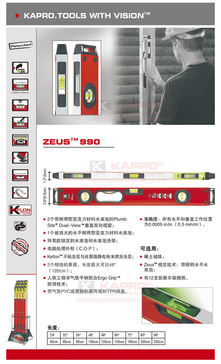 KAPRO high precision magnetic horizontal ruler 990 Israel open up road Carabao vertical double Windows anti-impact shock-proof