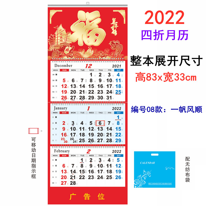 Boat-hanging calendar Four-fold-white boat hanging calendar Four-fold 7 Number A-Red Bottom Hundred Fu Boat Hang Calendar Four Fold 7 Number of Golden Bottom Perfuge Boat Hang Calendar Four Fold-Blue Four Fold Hanging Calendar 08 One Sail Smooth