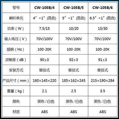 CW-105BW conference wall-mounted speaker black and white constant voltage speaker audio box Tenggao radio music promotion