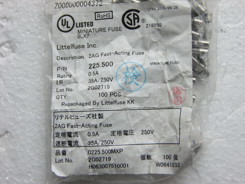Original Japanese imported b glass tube insurance tube 0 1A 1A 2A fuse